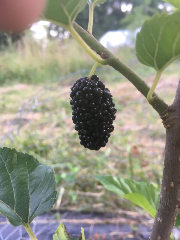 True dwarf mulberry with excellent flavor and high-production. Is immune to popcorn disease.